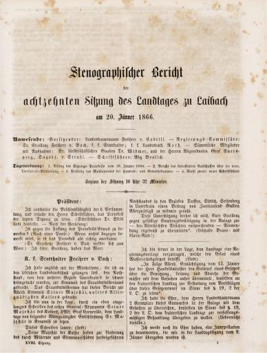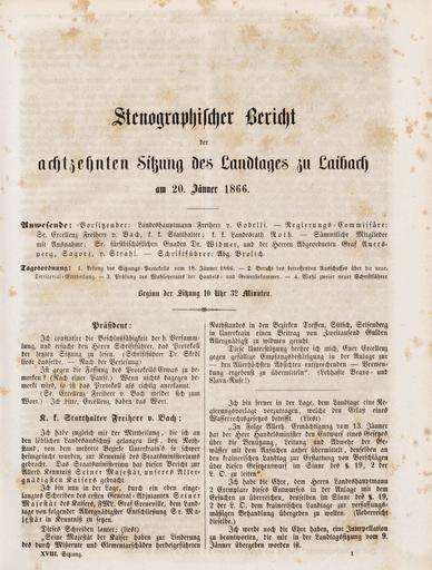 • Original title: Stenographischer Bericht der achzehnten Sitzung des Landtages zu Laibach am 20. Jänner 1866