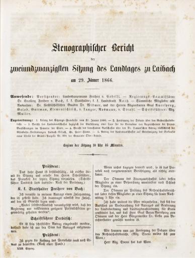 • Original title: Stenographischer Bericht der zweiundzwanzigsten Sitzung des Landtages zu Laibach am 29. Jänner 1866