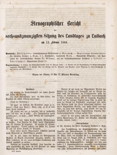 Originalni naslov: Stenographischer Bericht der sechsundzwanzigsten Sitzung des Landtages zu Laibach am 12. Februar 1866