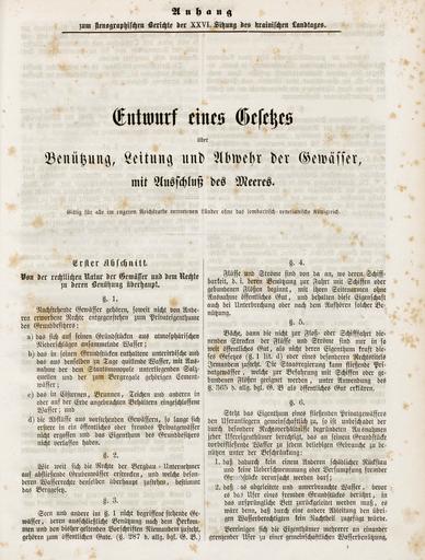 • Entwurf eines Gesetzes über Benützung, Leitung und Abwehr der Gewässer, mit Ansschluss des Meeres