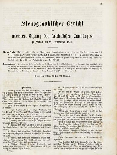 Original title: Stenographischer Bericht der vierten Sitzung des Landtages zu Laibach am 28. November 1866