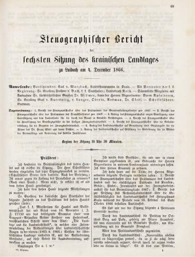 • Stenographischer Bericht der sechsten Sitzung des Landtages zu Laibach am 4. Dezember 1866