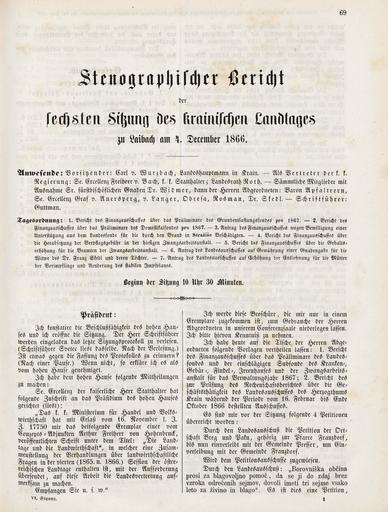 • Original title: Stenographischer Bericht der sechsten Sitzung des Landtages zu Laibach am 4. Dezember 1866