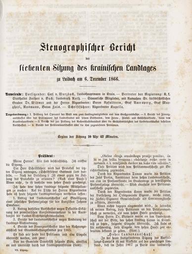 • Originalni naslov: Stenographischer Bericht der siebten Sitzung des Landtages zu Laibach am 6. Dezember 1866