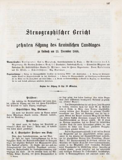 • Originalni naslov: Stenographischer Bericht der zehnten Sitzung des Landtages zu Laibach am 13. Dezember 1866