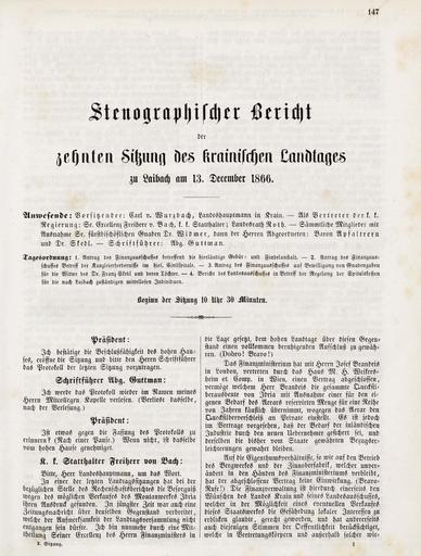 • Original title: Stenographischer Bericht der zehnten Sitzung des Landtages zu Laibach am 13. Dezember 1866