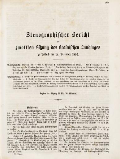 Originalni naslov: Stenographischer Bericht der zwölften Sitzung des Landtages zu Laibach am 18. Dezember 1866