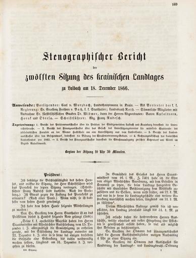 • Original title: Stenographischer Bericht der zwölften Sitzung des Landtages zu Laibach am 18. Dezember 1866
