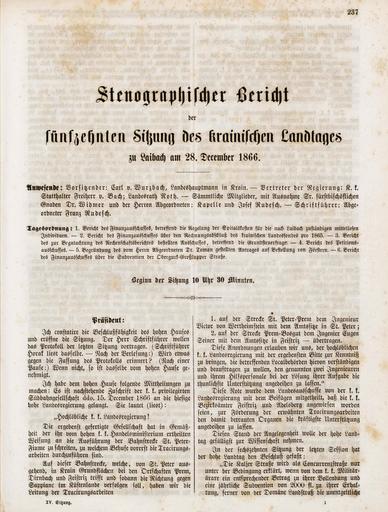 • Original title: Stenographischer Bericht der fünfzehnten Sitzung des Landtages zu Laibach am 28. Dezember 1866