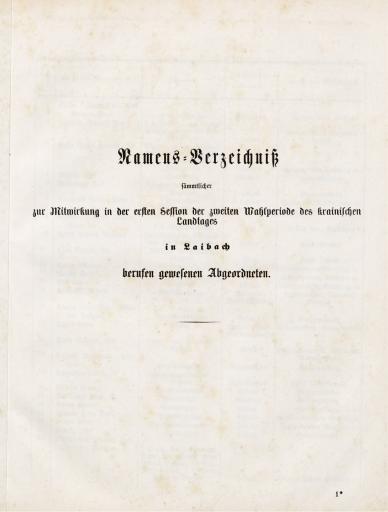 Originalni naslov: Namensverzeichniss sämmtlicher zur Mitwirkung in der ersten Session der zweiten Wahlperiode des krainischen Landtages in Laibach berufen gewesenen Abgeordneten
