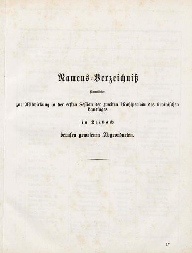 Namensverzeichniss sämmtlicher zur Mitwirkung in der ersten Session der zweiten Wahlperiode des krainischen Landtages in Laibach berufen gewesenen Abgeordneten