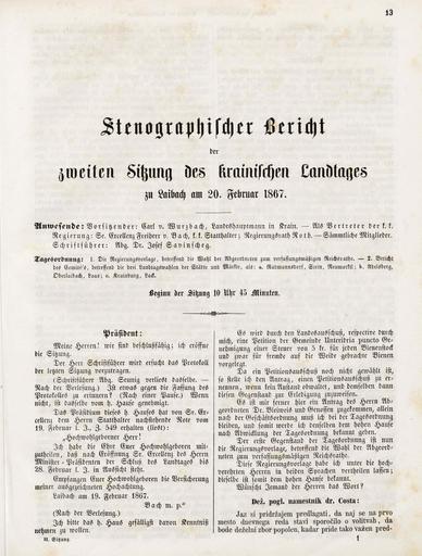 • Original title: Stenographischer Bericht der zweiten Sitzung des krainischen Landtages zu Laibach am 20. Februar 1867