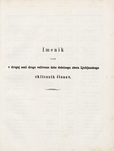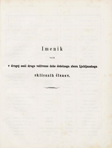 Imenik vsih v drugej sesii druge volitvene dobe deželnega zbora Ljubljanskega sklicanih članov./Namensverzeichniss sämmtticher zur Mitwirkung in der zweiten Session der zweiten Wahlperiode des krainischen Landtages in Laibach berufen gewesenen Abgeordneten.