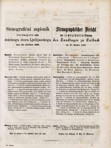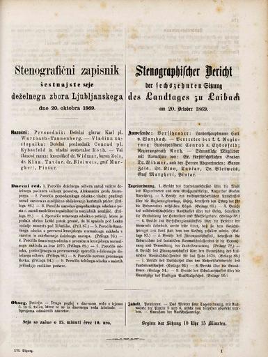 Original title: Stenografični zapisnik šesnajste seje deželnega zbora Ljubljanskega dne 20. oktobra 1869. leta / Stenographischer Bericht der sechszehnten Sitzung des Landtages zu Laibach am 20. Oktober 1869