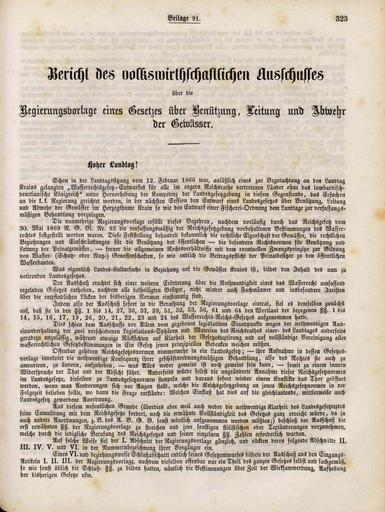 Priloga 91-100 (Bericht des volkswirtschaftlichen Ausschusses über die Regierungsvorlage eines Gesetzes über Benützung, Leitung und Abwehr der Gewässer, Bericht des Schulausschusses über die Regierungsvorlage, betreffend das Gesetz zur Regelungg der Rechtsverhältnisse des Lehrerstandes an den öffentlichen Volksschulen, Poročilo odseka, postavljenega za pretresovanje sporočila o delovanju deželnega odbora, Poročilo zastran gruntnega davka, Bericht des Schulausschusses über die Grundzüge des künftigen Realschulgesetzes, Sporočilo flnančnega odseka o proračunu posilne delalnice za leto 1870, Poročilo gospodarskega odseka o nasvetu poslanca gosp. Dr. Razlaga zarad vzajemne zavarovalnice za kranjsko deželo za poslopja in premakljivo blago zoper škodo ognja, Poročilo vstavnega odseka zarad prenaredbe § 4 deželnega reda, Sporočilo šolskega odbora zarad učnega jezika v šolah in zarad pravoznanstvene akademije ali vseučilišča, Bericht des Finanzausschusses über den Rechnungsabschluss des krainischen Landesfondes und seiner Subfonde für das Jahr 1868)