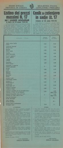 • Cenik za zelenjavo in sadje št. 17, veljaven od 20. junija 1942-XX.