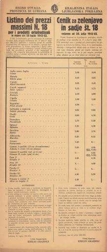 • Listino dei prezzi massimi N. 18 per i prodotti ortofrutticoli in vigore dal 20 luglio 1942-XX.
