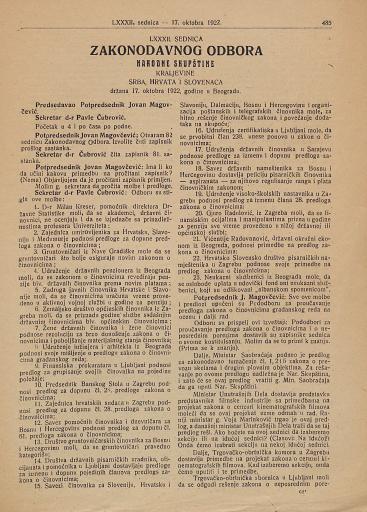 LXXXII. sednica (17. oktobar 1922, Beograd)