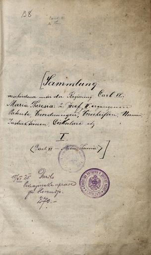 Zbirka raznih patentov, odlokov, predpisov, norm, navodil, okrožnic ipd., ki so jih izdali Karl VI., Marija Terezija in Jožef II.