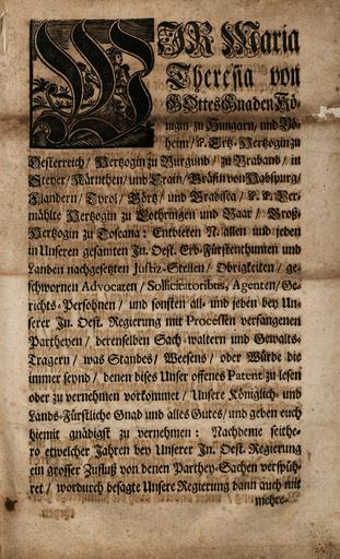 Zbirka raznih patentov, odlokov, predpisov, norm, navodil, okrožnic ipd., ki so jih izdali Karl VI., Marija Terezija in Jožef II.