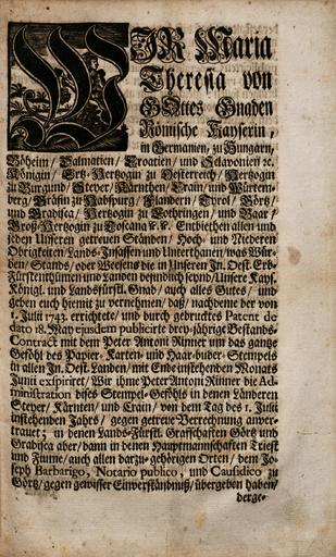 Zbirka raznih patentov, odlokov, predpisov, norm, navodil, okrožnic ipd., ki so jih izdali Karl VI., Marija Terezija in Jožef II.