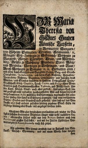 Zbirka raznih patentov, odlokov, predpisov, norm, navodil, okrožnic ipd., ki so jih izdali Karl VI., Marija Terezija in Jožef II.