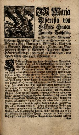 Zbirka raznih patentov, odlokov, predpisov, norm, navodil, okrožnic ipd., ki so jih izdali Karl VI., Marija Terezija in Jožef II.