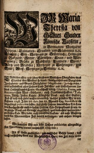 Zbirka raznih patentov, odlokov, predpisov, norm, navodil, okrožnic ipd., ki so jih izdali Karl VI., Marija Terezija in Jožef II.