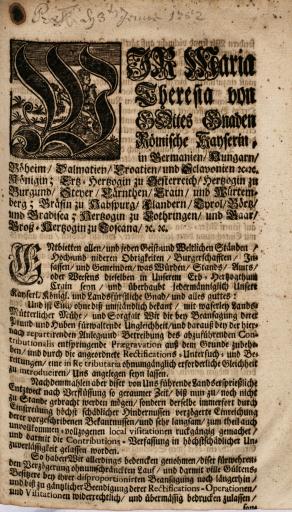 Zbirka raznih patentov, odlokov, predpisov, norm, navodil, okrožnic ipd., ki so jih izdali Karl VI., Marija Terezija in Jožef II.