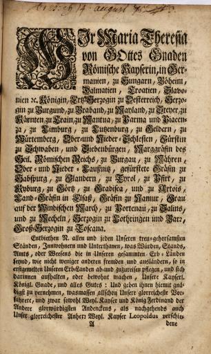 Ključne besede:Patenti, odloki, predpisi, norme, navodila, okrožnice, Marija Terezija, Patents, Decrees, Regulations, Norms, Instructions, Circulars, Maria Theresa