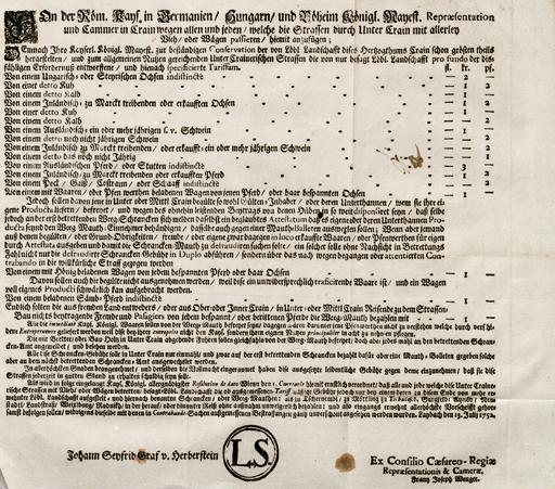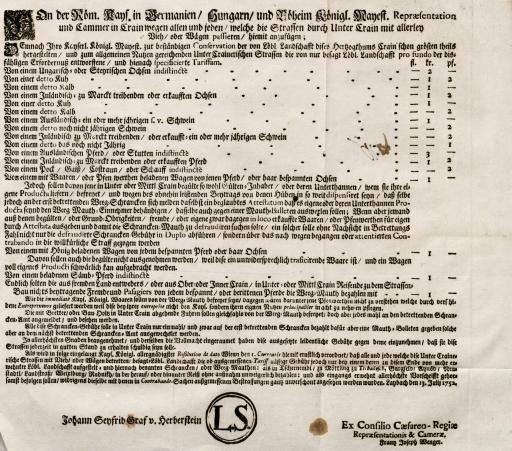 • (Wegen allen und jeden, welche die Strassen durch Unter Crain mit allerley Vieh oder Wägen passieren)
