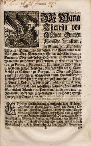 Zbirka raznih patentov, odlokov, predpisov, norm, navodil, okrožnic ipd., ki so jih izdali Karl VI., Marija Terezija in Jožef II.