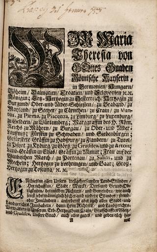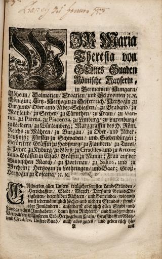 Zbirka raznih patentov, odlokov, predpisov, norm, navodil, okrožnic ipd., ki so jih izdali Karl VI., Marija Terezija in Jožef II.