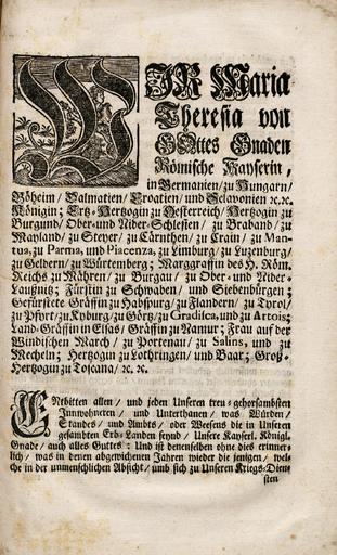 Zbirka raznih patentov, odlokov, predpisov, norm, navodil, okrožnic ipd., ki so jih izdali Karl VI., Marija Terezija in Jožef II.