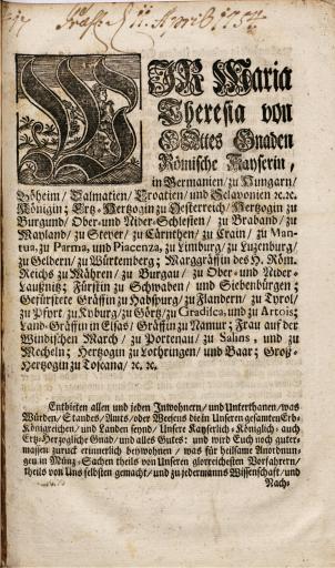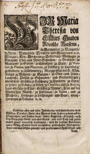 Zbirka raznih patentov, odlokov, predpisov, norm, navodil, okrožnic ipd., ki so jih izdali Karl VI., Marija Terezija in Jožef II.
