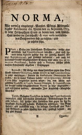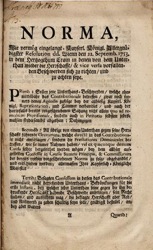 • Norma, wie ... in dem Herzogthum Crain in denen ... vorfallenden Beschwerden sich zu richten und zu achten seye.
