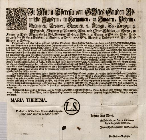 Zbirka raznih patentov, odlokov, predpisov, norm, navodil, okrožnic ipd., ki so jih izdali Karl VI., Marija Terezija in Jožef II.