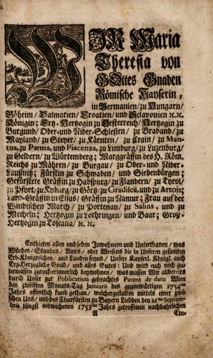 Zbirka raznih patentov, odlokov, predpisov, norm, navodil, okrožnic ipd., ki so jih izdali Karl VI., Marija Terezija in Jožef II.