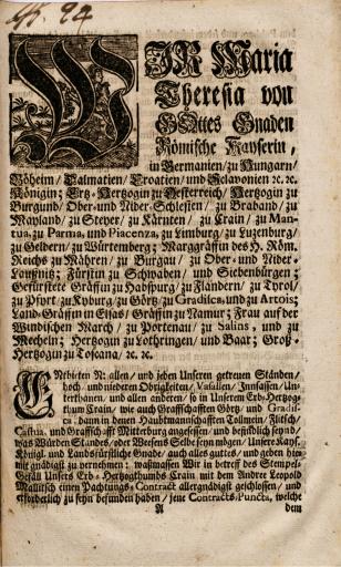 Zbirka raznih patentov, odlokov, predpisov, norm, navodil, okrožnic ipd., ki so jih izdali Karl VI., Marija Terezija in Jožef II.