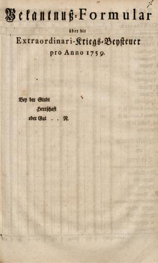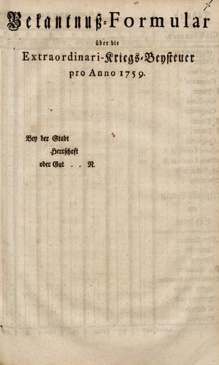 • Bekantniss-Formular über die Extraordinari-Kriegs-Besteuer pro Anno 1759.