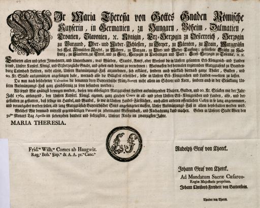 Zbirka raznih patentov, odlokov, predpisov, norm, navodil, okrožnic ipd., ki so jih izdali Karl VI., Marija Terezija in Jožef II.