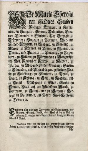Zbirka raznih patentov, odlokov, predpisov, norm, navodil, okrožnic ipd., ki so jih izdali Karl VI., Marija Terezija in Jožef II.