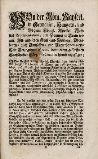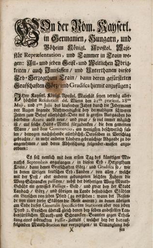 Zbirka raznih patentov, odlokov, predpisov, norm, navodil, okrožnic ipd., ki so jih izdali Karl VI., Marija Terezija in Jožef II.