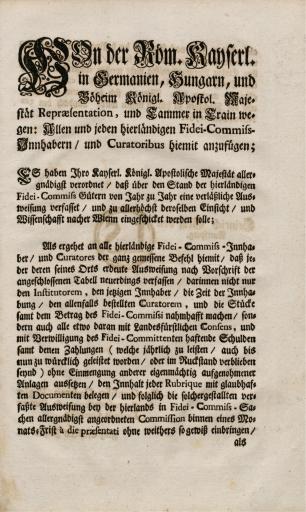 Zbirka raznih patentov, odlokov, predpisov, norm, navodil, okrožnic ipd., ki so jih izdali Karl VI., Marija Terezija in Jožef II.