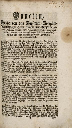 Puncten, welche von dem ... Herrn Commissario Grafen v. Vilana Perlas ... vorgelegt worden ... sind.