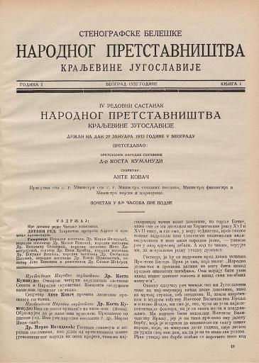 SI AS 2058/4, Stenografske beležke Narodnega predstavništva Kraljevine Jugoslavije (Senata in Narodne skupščine), 1932