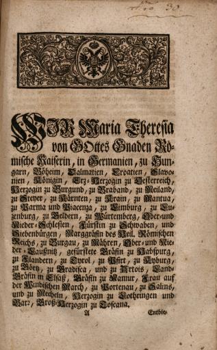 Zbirka raznih patentov, odlokov, predpisov, norm, navodil, okrožnic ipd., ki so jih izdali Karl VI., Marija Terezija in Jožef II.