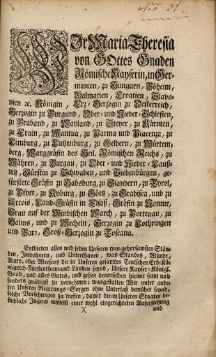 Zbirka raznih patentov, odlokov, predpisov, norm, navodil, okrožnic ipd., ki so jih izdali Karl VI., Marija Terezija in Jožef II.