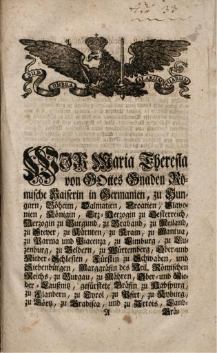 Zbirka raznih patentov, odlokov, predpisov, norm, navodil, okrožnic ipd., ki so jih izdali Karl VI., Marija Terezija in Jožef II.