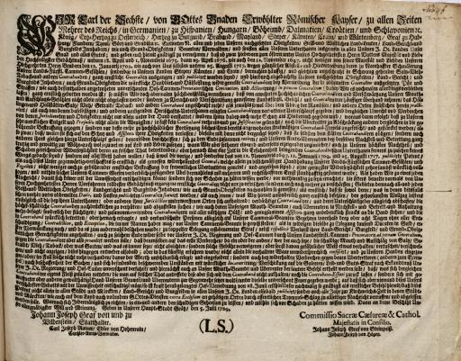 Zbirka raznih patentov, odlokov, predpisov, norm, navodil, okrožnic ipd., ki so jih izdali Karl VI., Marija Terezija in Jožef II.